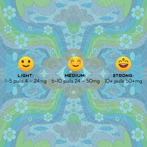 - Light: 1-5 pulls 4 – 24 mg