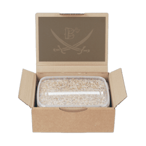 - 1x grow box – This contains substrate with active mycelium (the cake) of the B+ cubensis strain